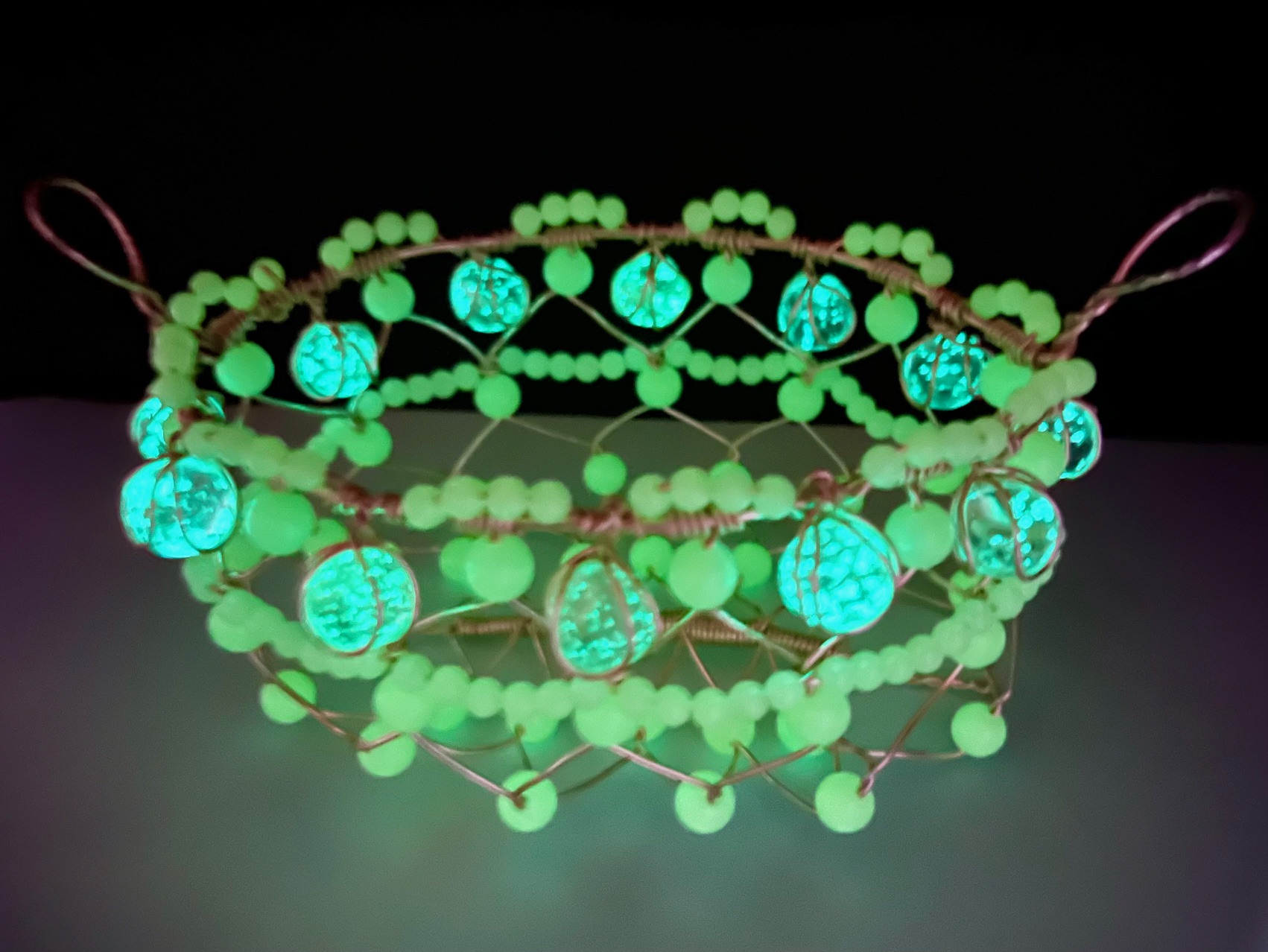 ルームアクセサリーリーフは、平成29年4月末の日本ホビーショーでのリクエスト作品です。ビー玉を使ったお花の作り方やリーフビーズの取り付け方、ワイヤーを使ったリーフの作り方など応用できる技術がいっぱいです。単品としても、雑貨のデコにも楽しんで頂ける作品です。